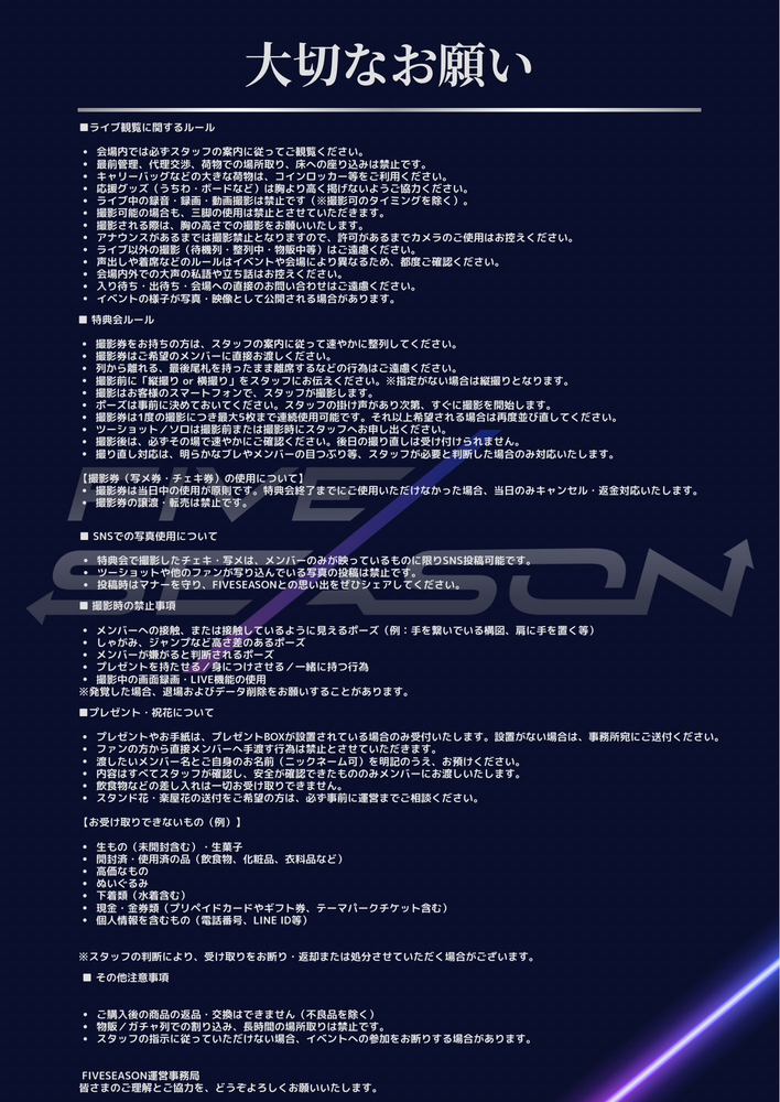 10/31 抽選結果について NEWS #FIVESEASON FIVESEASON 2025/10/24 21:11 フォロー 抽選の結果が出ました!※支払期限を過ぎますと、当選された方でも最前チケットは無効となりますので、ご注意ください! URLをコピーする 報告する