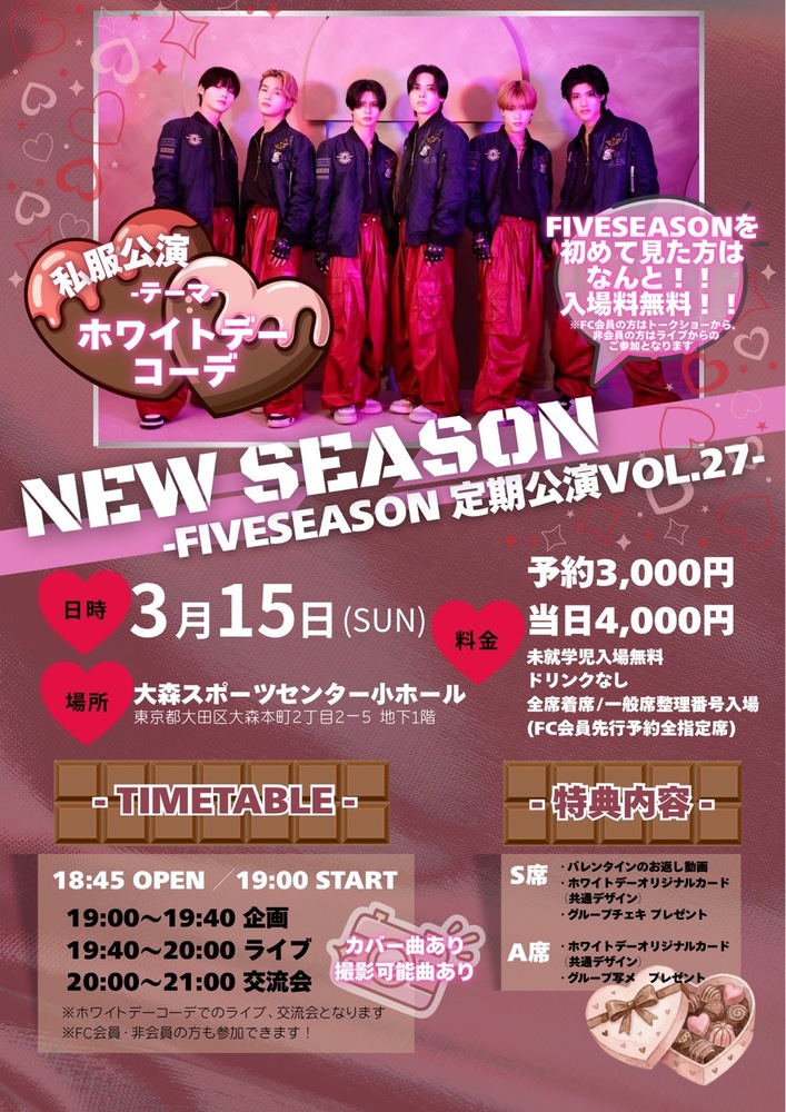 【ホワイトデー特別公演】FIVESEASON 定期公演 VOL.27(私服ライブ)